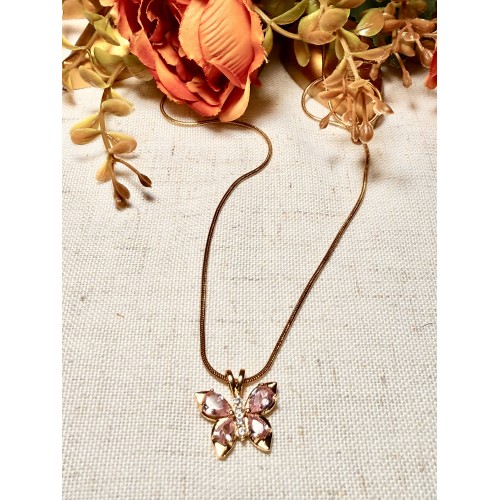 CADENA MARIPOSA PIEDRA ENGARZADA ROSA