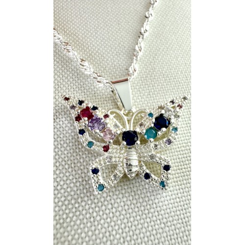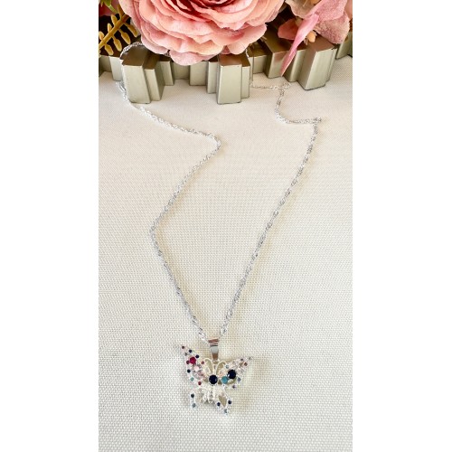 CADENA MARIPOSA CON ALAS Y DIJE ENGARZADA